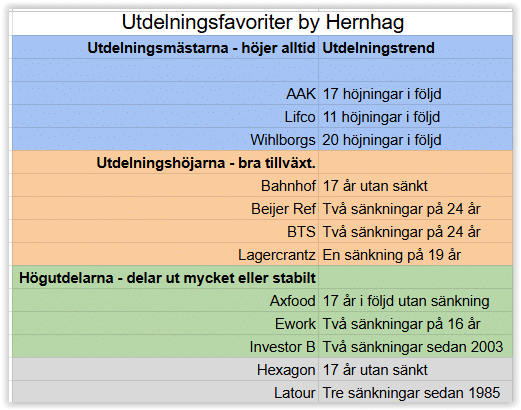 –>Urvalet är bolagen som ligger i topp på hernhag.se/utdelningar under rubriken ”Stockholmsbörsens bästa utdelningshöjare” - Utdelningshöjarna. utdelningsaktier med bra tillväxt.